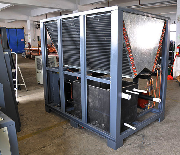 風冷冷水機組的風扇十分重要,它是風冷機組翅片式冷凝器一直與空氣交換的部件,一旦散熱不好,那么就直接影響到冷水機組無奈畸形制冷。所以在風冷冷水機組運行半年或一年后,要蕩滌翅片式冷凝器,以及清理風扇上面的灰塵等雜物,確保清潔整潔,不僅利于機組制冷畸形,還可能延長機組利用壽命,為企業節儉運行本錢。